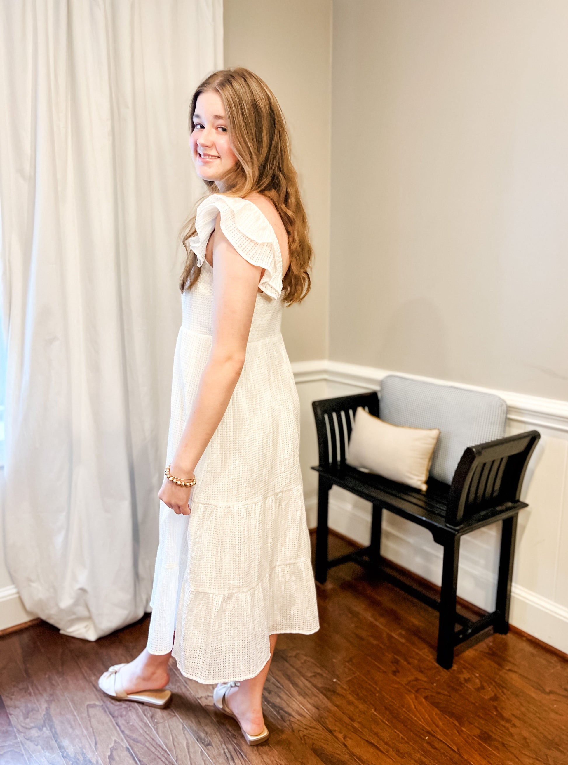 White Tiered Midi Dress